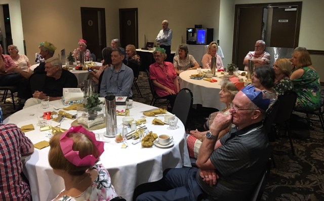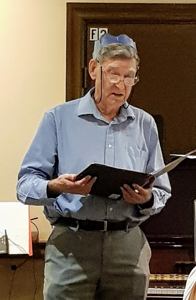 A chock-full program of musical items included performances of The Foggy, Foggy Dew by John McCollow; the Flanders & Swann classic, Hippopotamus Song by Ian Symes; You Need Hands by Beverley Crouch; Time in a Bottle by Sue Stern; High Noon by Ray Wiseman; Making Whoopie by Desleigh Byrne and Rosmary Henni; To Make You Feel My Love by Jenni Mersiades; and Unforgettable by Denis Joyce (which he dedicated to late choir member Bill Reilly). A surprise addition to the program was a solo by our Patron, Paul Sayer, who sang Passing By (A Lady Sweet and Kind), a song that he had originally won a prize for singing as a school boy soprano. (He sang it several octaves lower and in a different key this time.)
