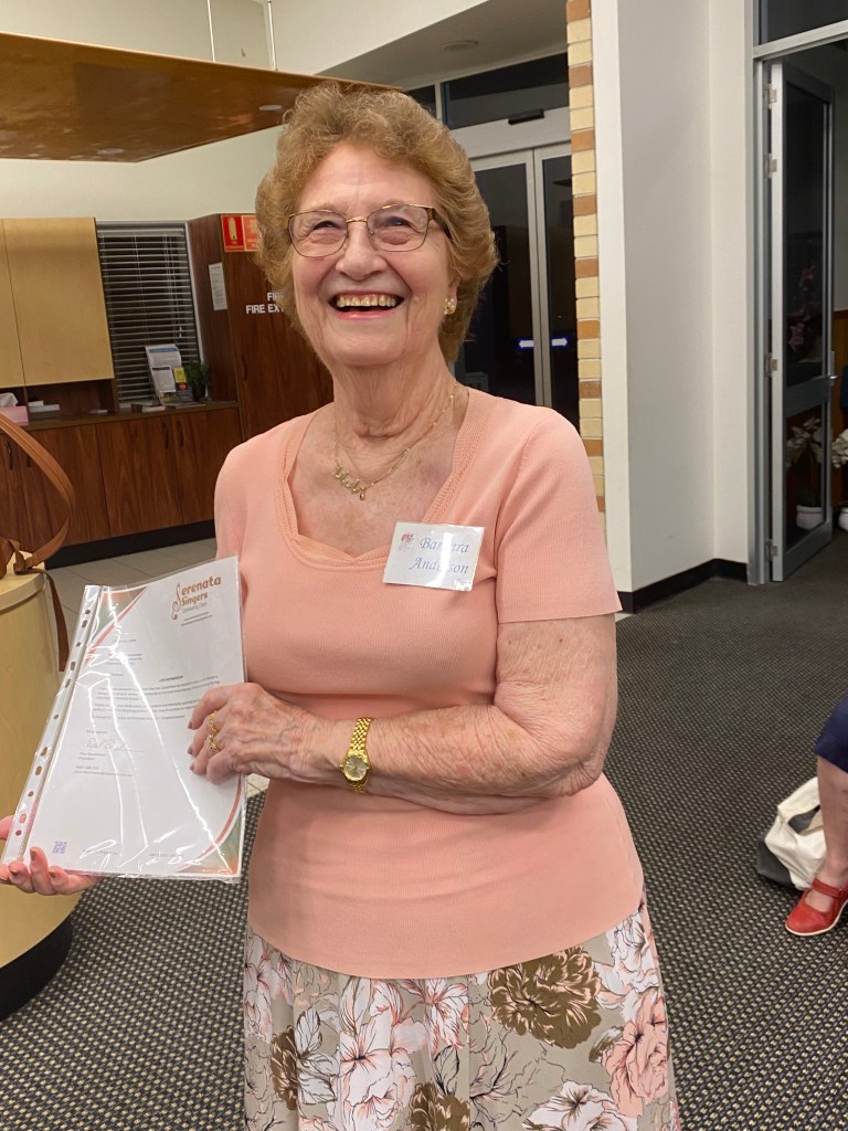 Serenata Singers has great pride in awarding one of our number, a LIFE MEMBERSHIP. Barbara Anderson has been with us since February 1974, now surpassing the 50 year mark.